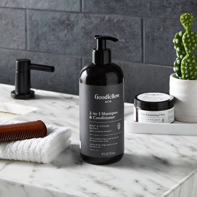 Treat your hair right and walk out clean and confident with the No. 03 Moroccan Mint & Cedar 2-In-1 Shampoo & Conditioner from Goodfellow & Co™. This refreshing conditioning wash is made with moisturizing hops extracts and scalp-tingling mint — giving you a refreshing allover formula that cleanses and restores dull hair, all in one simple step. The compelling scent offers a fresh smell with floral and coconut notes, and a woody and subtly musky finish provides a masculine touch. Simply apply a generous amount over wet hair and scalp, then rinse clean — you’re ready for the day.