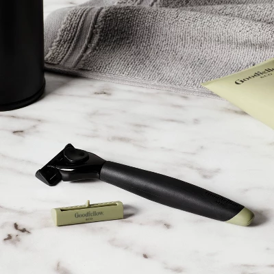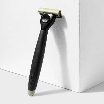 The 5-Blade Razor with Two Carts from Goodfellow & Co™ makes a practical addition to your grooming essentials. This pack of three body razors is designed with a Vitamin E-enriched lubricating strip that helps reduce skin irritation. The five-blade pivoting cartridge helps the razor glide easily over skin, while the ergonomic design offers ultimate control. Best of all, it also includes a bonus trimmer blade on the back for versatile use.