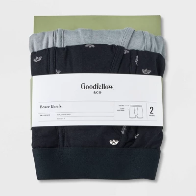 Refresh your underwear drawer with this 2-Pack Paper Boat Print Boxer Briefs from Goodfellow & Co™. This pack of boxer briefs includes two pairs — one in a solid gray hue and the other featuring a repeated boat print on a black background — to add variety to your underwear drawer. Made from a soft and stretchy fabric with a tagless design, the mid-rise briefs offer comfortable all-day wear. The full elastic waistband provides you a flexible secure fit, while the functional fly adds a practical touch.